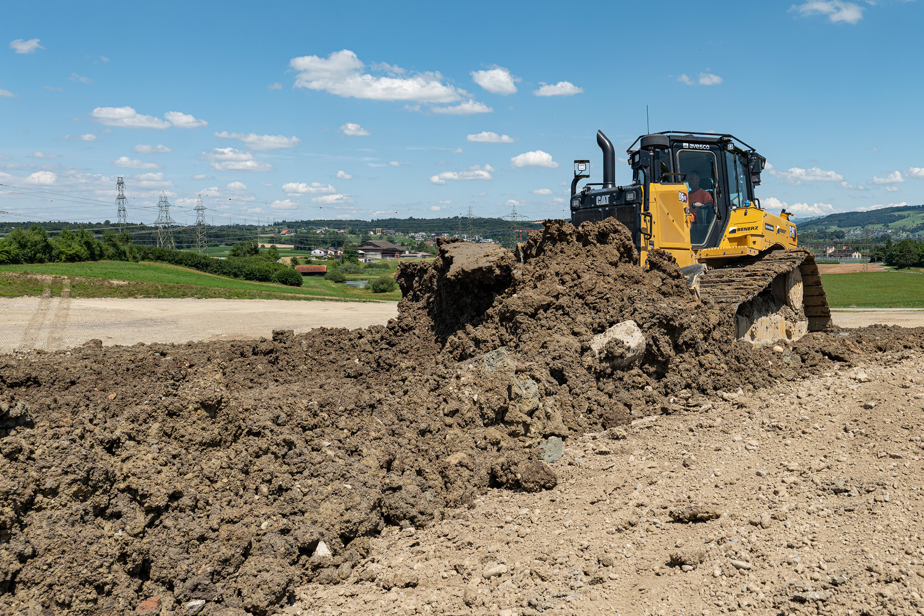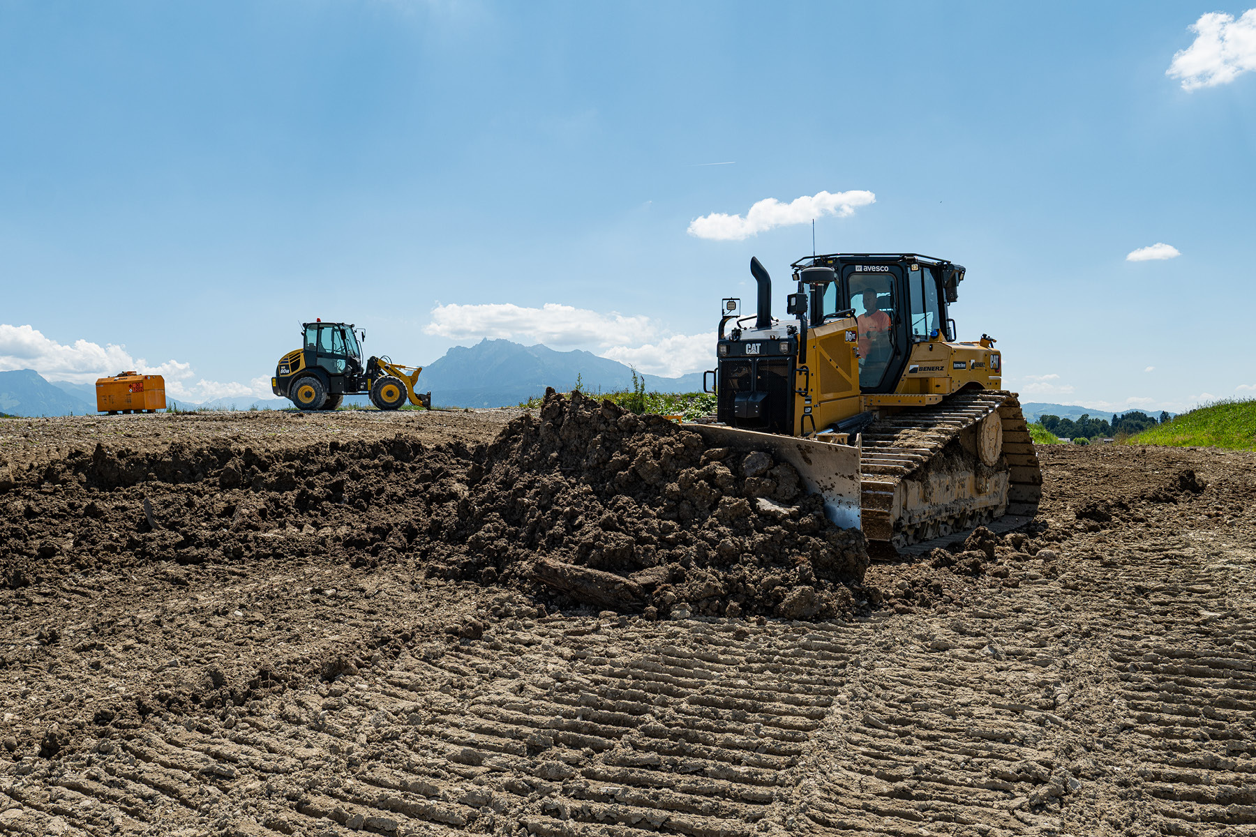 Der Cat D6 XE, der seit Anfang Jahr auf der Deponie Waldibrücke die Erdarbeiten erledigt, ist das neue Prunkstück der Benerz AG. Maschinist Franz Bucher findet nur lobende Worte für die Neuanschaffung: «Der Dozer ist leistungsfähig, einfach zu bedienen und angenehm zu fahren», so sein Fazit. Besonders überzeugt ihn, dass die Maschine auch auf schlammigem Untergrund effizient arbeitet – dank der grösseren Auflagefläche der Raupen, die den Bodendruck verringert. Genau das war im letzten Jahr eine der Auflagen bei der Suche nach einer neuen Maschine. «Heute, wo ein Grossteil des auf den Baustellen anfallenden Aushubs wiederverwertet wird, kommt vorwiegend strukturloses, schlecht verdichtbares Material auf die Deponie», erklärt Christoph Keller, Leiter Baustoffe bei der Benerz AG. «Da brauchen wir entsprechende Geräte.»